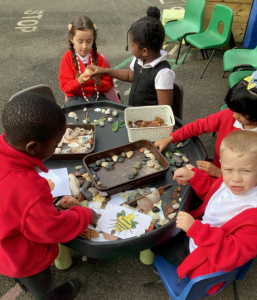In Science, the children have been learning all about their bodies and their senses. They tasted different types of fruit, matched different scents to pictures, guessed the sounds to explore their sense of hearing and used binoculars and magnifying glasses to explore their sense of sight. The children also learnt that they can feel things with different parts of their bodies, not just their hands. The children have also been learning about the change in season from Summer to Autumn.